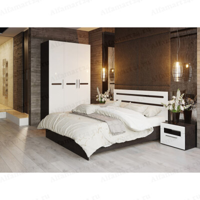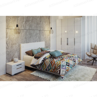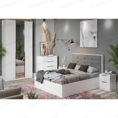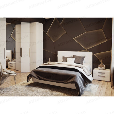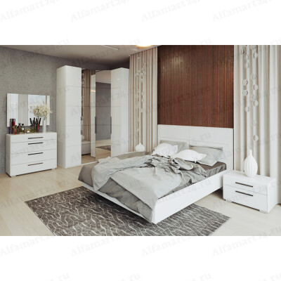 Спальный гарнитур Трия "Наоми" Вариант 3 (Белый/Белый глянец)