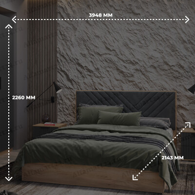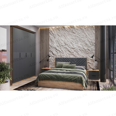 Спальный гарнитур Трия "Хилтон" (Дуб Крафт золотой/Графит матовый)