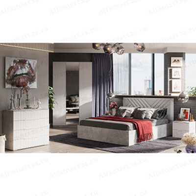 Спальный гарнитур Трия "Хилтон" (Ателье светлый/Белый матовый)